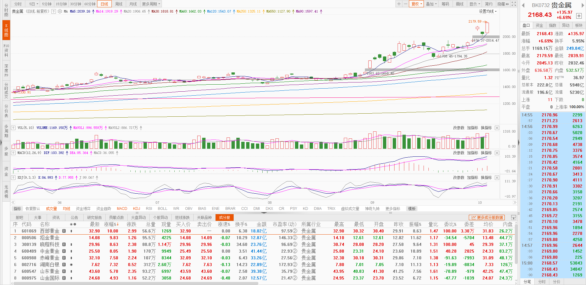 行业板块涨少跌多,稀土永磁集体爆发,个股而言,银河磁体、新莱福、北矿科技、华宏科技、安泰科技、包钢股份涨停;贵金属大涨,西部黄金涨停;能源金属、电子化学品、半导体板块涨幅居前,汽车零部件、消费电子、电机、游戏、文化传媒板块跌幅居前。个股方面,上涨股票数量1684只,73只股票涨停,3634只股票下跌,上纬新材今日复牌一字跌停。