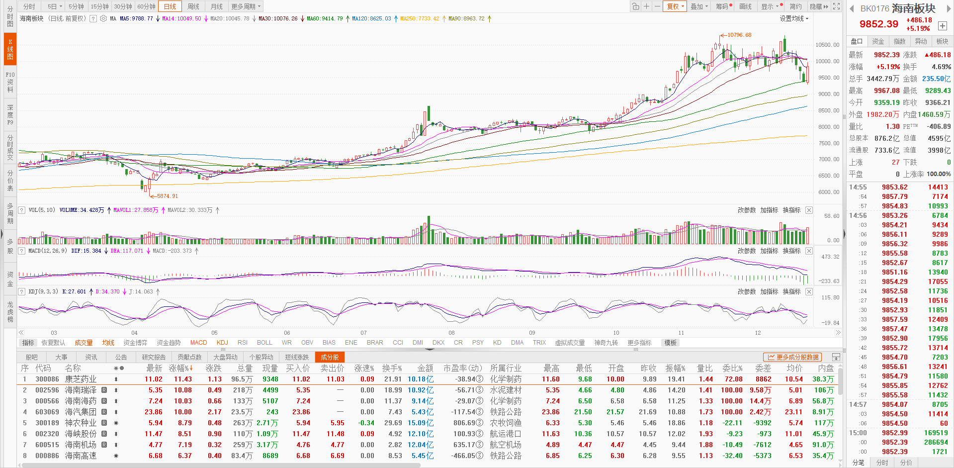 个股方面,上涨股票数量接近4500只,逾80只股票涨停。海南板块午后快速拉升,海南海药、海汽集团双双涨停。大消费板块全天走强,零售、乳业方向领涨,上海九百、庄园牧场等多股涨停。商业航天概念延续强势,华体科技、西部材料均2连板。智能驾驶概念走强,浙江世宝4连板。路畅科技4天2板。可控核聚变概念表现强势,王子新材3天2板。