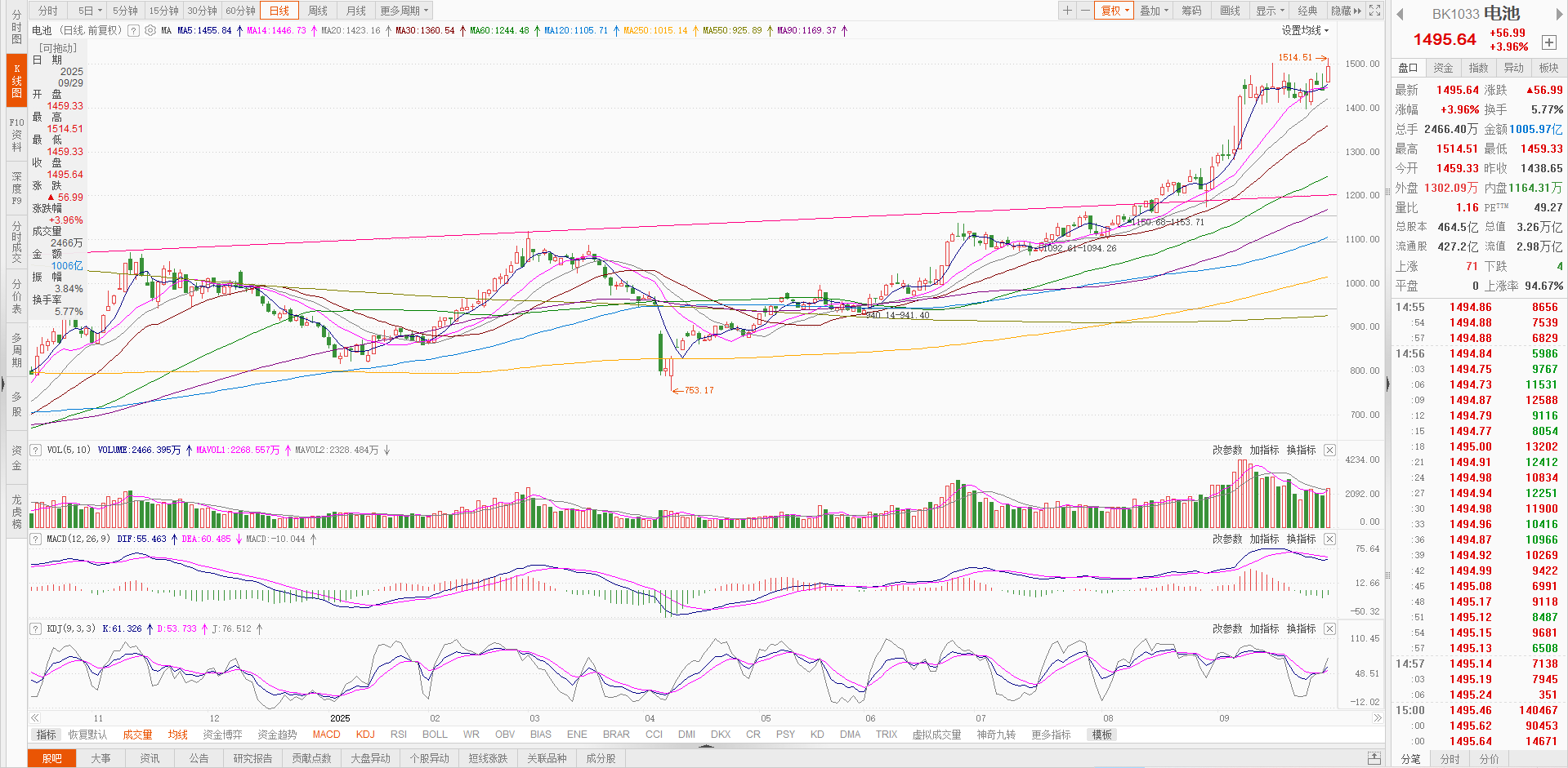行业板块多数收涨,能源金属、证券、电池、贵金属板块大涨,钢铁行业、多元金融、有色金属、保险板块涨幅居前,教育板块跌幅居前。